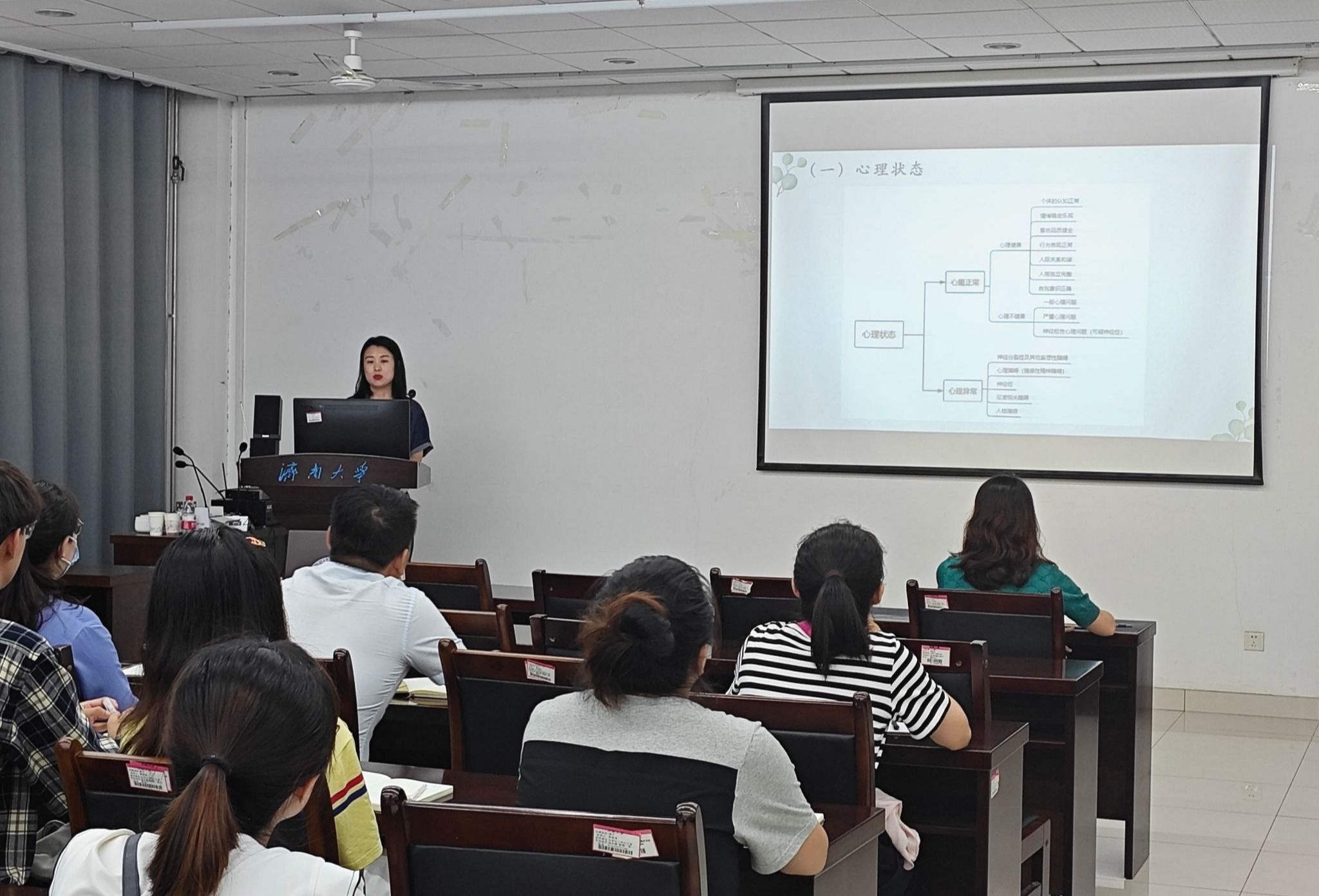 蔺琦琦围绕大学生常见心理问题、心理危机早期识别干预以及班主任自身情绪调节等方面作了专题报告,结合实际工作案例向与会班主任分享了识别早期心理危机途径、学生心理危机应对方法和谈心谈话技巧。蔺琦琦表示,班主任不仅要关注学生心理状况,也要重视自身情绪调节,并分享了减压小妙招,帮助班主任老师更好地开展工作。