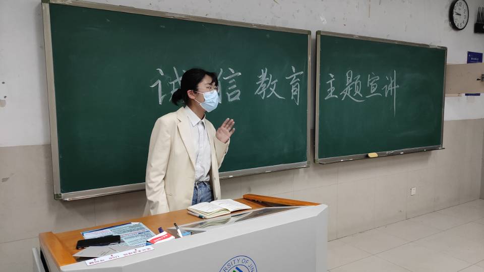 为深入推进资助育人,增强学生的诚信意识和责任担当,加强诚信教育、感恩教育、励志教育,引导学生树立正确的消费观和价值观,增强学生的社会责任感,开云kaiyun登录入口于5月24日晚8点45分在第十教学楼203教室举办“诚信教育主题宣讲”活动。本次活动由借款部分同学及学生会部分同学参与。