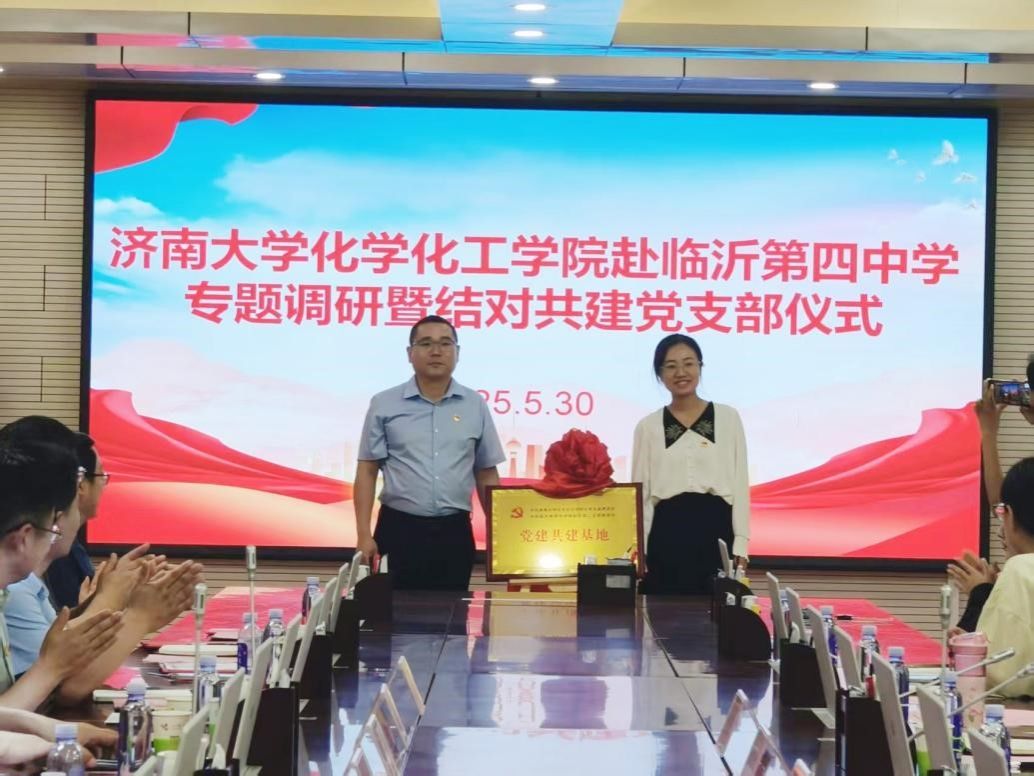 开云kaiyun登录入口化学党支部书记杨红晓与临沂第四中学西校区第二支部书记王雷共同为“党建共建基地”揭牌。两位书记分别表示将以支部共建为契机,把党建工作与教育教学、人才培养等中心工作深度融合,实现“党建引领方向,业务彰显成效”的良性循环。